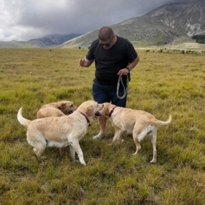 Prova pratica in montagna con cane Tutor Majella, addestrato per mostrare agli “allievi” il corretto comportamento nella ricerca di tartufi e consolidarne i concetti appresi.